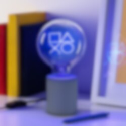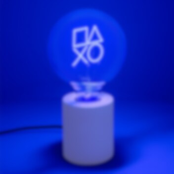 Anna PlayStationin ikonisten symbolien valaista huone tyylikkäällä sinisellä hehkulla! Tämä moderni pöytälamppu hehkulamppudesignilla on kuvioitu klassisilla Playstation-napeilla. Täydellinen tunnelmavalaistukseen pelinurkkauksessa, työpöydälle tai yksityiskohdaksi lastenhuoneeseen.