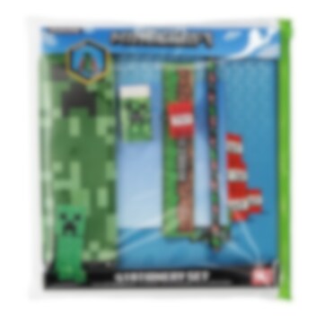 Tämä 7-osainen kirjoitussetti tarjoaa kaiken tarvittavan luovalle Minecraft-pelaajalle . Setti sisältää säilytyspussin, metallisen kynäkotelon, A5-kokoisen muistikirjan, lyijykynän, viivottimen, pyyhekumin ja terottimen.