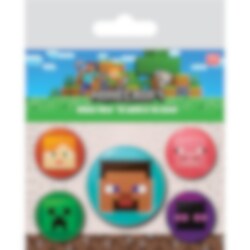 Tuo pala pelimaailmaa arkeen näillä Minecraft-rintamerkeillä! Setti sisältää 5 rintamerkkiä, joissa on suosittuja hahmoja kuten Steve, Alex, Creeper, Enderman ja sika – täydellisiä kiinnitettäväksi laukkuihin, takkeihin tai penaaliin.