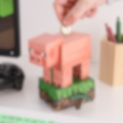 Säästä rahaa luovalla ja hauskalla tavalla tämän Minecraft-rakennussarjan avulla! Sarja sisältää kaiken, mitä tarvitset suloisen possun rakentamiseen. Possu toimii samalla säästöpossuna – täysin ilman liimaa tai saksia.