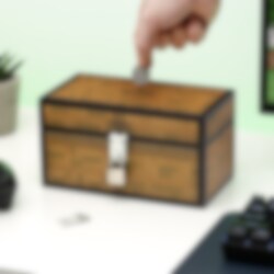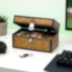 Erittäin tyylikäs säästöpossu, joka näyttää klassiselta arkulta Minecraft-maailmasta. Täydellinen kolikoiden ja pienten aarteiden säilyttämiseen – lisäturvaa mukana tulevan riippulukon ja avainten ansiosta.