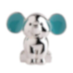 Kromattu säästöpossu, joka kuvaa söpöä norsua, jolla on siniset korvat. Täydellinen lahja kastettavalle lapselle. 13 x 12,5 cm.