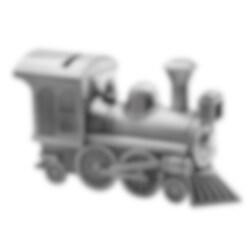Tinasta valmistettu säästörasia, joka kuvaa junaa. Todella hieno kastelahja lapselle. 14 x 9 cm.