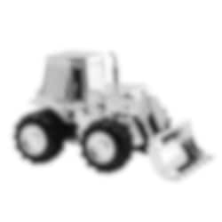 Kromattu säästörasia, joka kuvaa etukuormaimella varustettua traktoria. Söpö kastelahja lapselle. 13 x 8,5 cm.