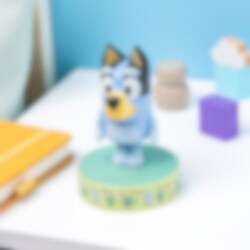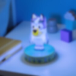 Piristä lastenhuonetta Blueylla. Tämä söpö lamppu esittää Blueyta ja luo pehmeää, viihtyisää valoa. Värikäs jalusta on hienosti kuvioitu. Lamppu sopii täydellisesti yövaloksi nuoremmille lapsille. Kompaktin kokonsa ansiosta se on helppo sijoittaa yöpöydälle, kirjahyllyyn tai koristeeksi leikkinurkkaukseen.