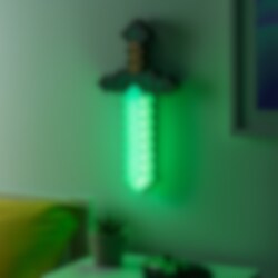 Täydellinen lamppu kaikille Minecraft-faneille! Anna ikonisen miekan valaista huoneesi tai pelinurkkauksesi tyylikkäästi. Lamppu on peräti 40 cm korkea ja 19 cm leveä. Voit itse valita, haluatko ripustaa sen seinälle vai asettaa sen pöydälle tai hyllylle.