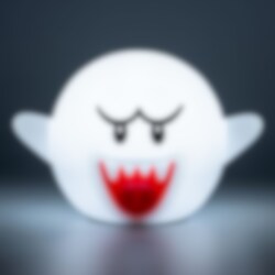 Tämä 14 cm korkea lamppu esittää ikonista haamua Super Mariosta. Valmistettu pehmeästä silikonista. Lamppu luo miellyttävää valkoista valoa ja siinä on käytännöllinen sammutustoiminto, joka sammuttaa lampun automaattisesti 1-3 tunnin kuluttua. Kolme eri kirkkaustasoa. Säädä valoa helposti painamalla päätä.
