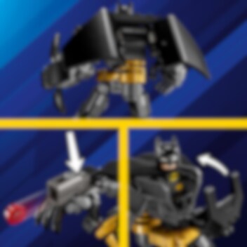 Batman-robottiasu tuo lisää tehoa taisteluun rikollisuutta vastaan! Avaa robotin ohjaamo ja laita Batmanin minihahmo ohjaimiin, ja liikuta sitten robotin taipuisia käsivarsia, jalkoja ja käsiä napaten kaikki tielle osuvat roistot! Valtava Batarang, nuppipyssy ja selkään kiinnitetty rakettireppu ohjaavat mahtavan robotin Batmanin seikkailuihin aivan uusissa korkeuksissa!