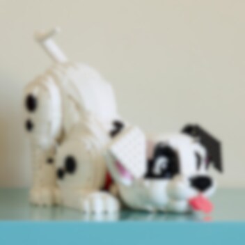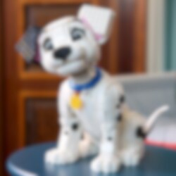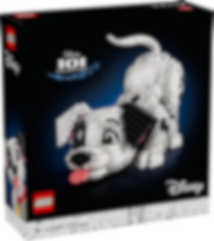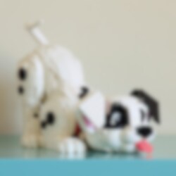 Tämän aikuisille tarkoitetun LEGO Disney setin dalmatialaishahmo on eteenpäin nojautuessaan 22 cm korkea.
