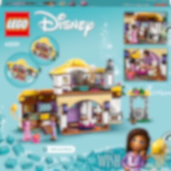 Vieraile Ashan kotona! Monipuolinen LEGO® ǀ Disney setti toivottaa sinut tervetulleeksi Ashan, hänen äitinsä ja isoisänsä kotiin Hamletissa. Käy sisään pyöreään, 2-kerroksiseen taloon ja tutustu sen sisätiloihin. Lämmittele takan ääressä Ashan muistikirjaa selaillen. Ihastele hymiökakkua sopivaa hetkeä odottaen. Siirry sitten yläkerran makuuhuoneeseen päiväunille tai ulos toivomuskaivolle, jossa voit esittää toiveesi!