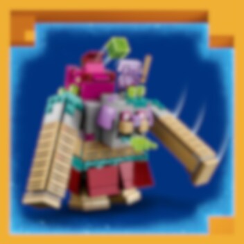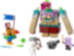 Minecraft Legends® ‑pelistä tuttu Ahmija on saapunut paikalle mellastamaan! Hahmon suusta syöksyy oksennusta, sen repusta sinkoilee lima-ammuksia ja otuksen jättimäiset kourat murskaavat kaiken eteen sattuvan. Kuka pysäyttää yököttävän ahmijan? Ranger-sankari ratsastaa paikalle Suuren linnun selässä. Lippua ja timanttimiekkaa heiluttaen ja luuttua soittaen kaksikko saa luurangon ja mukulakivigolemin komentoonsa. Taistelu alkakoon!