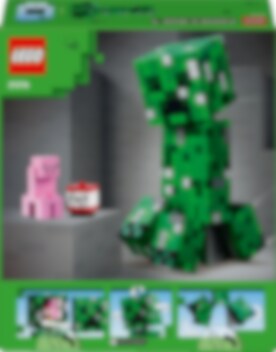LEGO® Minecraft® Creeper (21276) är en stor, rörlig actionfigur som barn kan bygga, leka med och visa upp för alla att beundra. Denna ikoniska spelrumsprydnad är en perfekt födelsedagspresent, julklapp eller överraskning till barn från 10 år som älskar Minecraft. Denna byggbara leksaksversion av Minecrafts ikoniska Creeper är 21 cm hög. Den har 4 rörliga ben och ett rörligt huvud som rör sig från sida till sida och kan vinklas uppåt och neråt. Framsidan av LEGO Minecraft figurens huvud kan tas av för att avslöja ett inre utrymme som innehåller en version av spelets ursprungliga Creeper och en dynamitdel. För ännu mer digitalt skoj kan byggare använda den intuitiva appen LEGO Builder för att zooma in, rotera modeller i 3D och följa sina framsteg. Innehåller 665 delar.