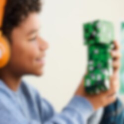 Denna Creeper är alltid redo för action – oavsett om den smyger sig fram i Minecraft® världen eller visas upp i ditt rum. Den innehåller även en dold överraskning. Öppna huvudets framsida för att se en miniversion av den ursprungliga Creeper och en dynamitdel. Precis vad du behöver för ett explosivt Minecraft äventyr!