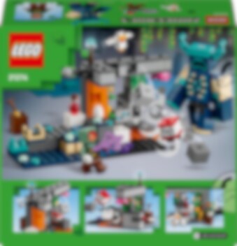 Vartijan kohtaaminen (21274) on peliin perustuva LEGO® setti, joka tempaa Minecraft®-pelaajat toimintaa pursuavaan kaivosseikkailuun syvän, pimeän ja vehreän luolan uumeniin. Pelin inspiroima luova Minecraft-keräilymalli sopii syntymäpäivä‑ tai yllätyslahjaksi yli 7-vuotiaille pojille ja tytöille. Monipuolisen LEGO rakennuslelun tapahtumapaikkana on vehreä luola keräiltävine timantteineen ja ametisteineen. Setti sisältää myös hiljaisen Rangerin Minecraft-minihahmon, kanamobin sekä Vartijan ison rakennettavan Minecraft-hahmon, jonka pään, käsivarret ja jalat voi asetella eri asentoihin. Mukana on pelistä tuttuja toimintoja, kuten käsikäyttöinen TNT-räjäytystoiminto ja kivenlohkareen pudotustoiminto. Elinvoiman palauttavina tarvikkeina on kultainen porkkana ja taikajuoma. Elämys saa hauskoja digitaalisia ulottuvuuksia LEGO Builder sovelluksessa, jossa malleja voi zoomata ja kiertää 3D-näkymässä. Setissä on 238 osaa.