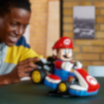 Anna innostuksesi Mario Kart ‑sarjaan näkyä rakentamalla yksityiskohtainen pienoismalli koristeeksi. Asettele Mario-hahmon pää ja kädet eri asentoihin hahmon istuessa Standard Kart ‑ajoneuvon kyydissä. Laita luomuksesi sitten jalustalle huikeaan asentoon kuin driftaamaan tai ajamaan hurjaa vauhtia. Tämä rakennelma on mainio sisustusesine aikuisille Mario Kart ‑faneille.
