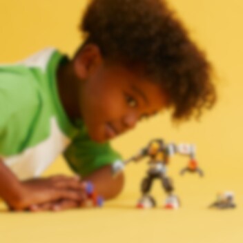 Kiipeä jykevän, rakennustöihin suunnitellun avaruusrobotin ohjaamoon ja suuntaa galaktisiin louhintaseikkailuihin. Tällä upealla robotilla on mahtava tutkia uusia maailmoja. Hahmossa on taivuteltavat nivelet, tehokas tartuntakoura ja isot jalat planeetan tutkimiseen kävellen. Laita robotti poraamaan näytteitä ja louhi ja halkaise kiviä sekä maan alta löytyviä energiakristalleja vasaralla ja tartuntakourilla. Kaikki valmista? Siispä tuumasta toimeen!