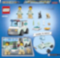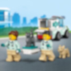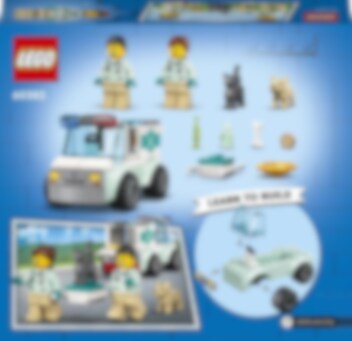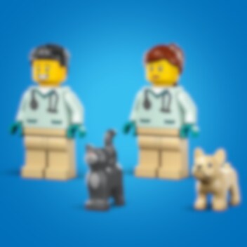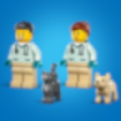 Lähde eläinlääkäreiden mukaan pelastamaan eläimiä. Nosta tarvikkeet kyytiin ja suuntaa pelastuspartion upean auton kyydissä pelastustehtävien pariin. Hoida nälkiintynyttä kissaa syöttämällä sitä tuttipullolla ja ojenna koiralle herkullinen luu nakerrettavaksi. Nosta loukkaantuneet eläimet paareille ja anna lääkettä ruiskulla. LEGO® City settien parissa voit hoitaa eläimiä ja uppoutua pelastusseikkailuihin!