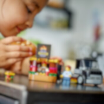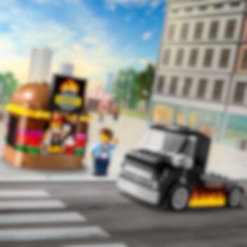 Hyppää hampurilaisauton kyytiin ja suuntaa LEGO® Cityn hipsterikortteliin. Avaa myyntiluukku, nosta herkullisten burgerien mainoskyltti paikoilleen, valmistele ainekset ja loihdi kaupungin parhaimmat purilaiset korttelin upeimmille asiakkaille. Kun päivän työt on taputeltu, hyppää kuljettajan paikalle ja kurvaa upealla ruokarekalla seuraavaan paikkaan!