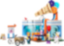 Hyppää tavarapyörän kyytiin ja suuntaa LEGO® City Jäätelökioskille! Auta työntekijää tarjoilemaan herkullisia jäätelöannoksia ja pirtelöitä tyytyväisille asiakkaille. Upea jäätelökahvila on täydellinen paikka järjestää syntymäpäiväjuhlat, sillä sieltä löytyy hieno jäätelötiski, tehosekoitin, jääkaappi ja ulkoterassi, jossa perhe ja ystävät voivat tutustua tarjottaviin.