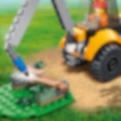Hyppää muunneltavan kaivinkoneen puikkoihin! Auta LEGO® Cityn työntekijöitä vaihtamaan vanha puistonpenkki moderniin, puhelimen lataustoiminnolla varustettuun älypenkkiin. Raivaa alue kaivinkoneen poralla ja kauhalla, kiinnitä ajoneuvoon haarukkaosa ja nosta uusi penkki sopivaan paikkaan. Kun kaikki on valmista, pakkaa luuta ja muut tarvikkeet mukaan ja suuntaa seuraavan tehtävän pariin!