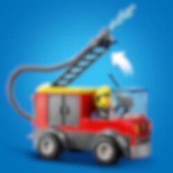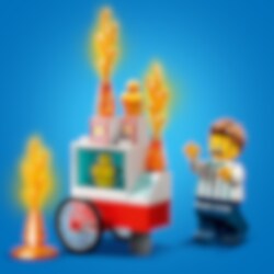 LEGO® Cityn palomiehet ovat ansaituilla päiväunilla, kun hälytys pärähtää soimaan. Apua! Popcornmyyjän kärry on leimahtanut liekkeihin! Katso monitorista, missä apua tarvitaan, nappaa palokypärä, laske liukumäkeä pitkin alas ja hyppää paloauton kyytiin… PIIPAA, PIIPAA! Kiidä palopaikalle ja pelasta päivä… ja popcornit!