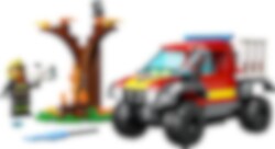 Voi ei… Vartioimatta jäänyt nuotio on sytyttänyt tulipalon! Hyppää palokunnan huikean nelivetoauton puikkoihin ja kiidä paikalle. Nyt tarvitaan apua, sillä kissanpentu on pulassa puunlatvassa. Nappaa sammutin mukaan, taltuta liekit ja pelasta kissa tikkaiden avulla. Kun tehtävä on suoritettu, anna kissalle herkullista grillattua kalaa. Uppoudu vauhdikkaisiin LEGO® City palokuntaseikkailuihin!