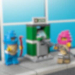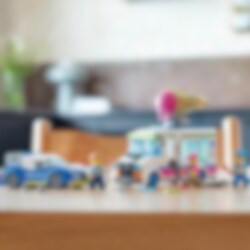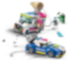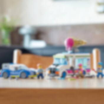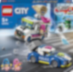 Pam! Kylmähermoiset rosvot Ice ja Cream ovat vetäneet pankkiautomaatin irti paikaltaan ja pakenevat jäätelöautoksi naamioidulla autollaan! Suuntaa takaa-ajoon LEGO® City poliisihahmon kanssa tehokkaalla poliisiautolla! Väistele jäätelöammuksia, joita jäätelöautosta tulitetaan ja käytä renkaanrikkojaa, niin rosvot jähmettyvät niille sijoilleen! ”JÄÄTÄVÄN” mahtavat seikkailut odottavat LEGO Cityssä!