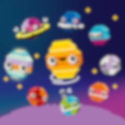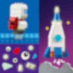 Ampaise avaruusseikkailuihin 5 helposti rakennettavan pienoismallin parissa! Rakenna hymyilevä aurinkokunta, avaruussukkula, hauska avaruusolento, upea astronautti ja Saturnus tuttuine renkaineen. Tuunaa rakennelmia värikkäillä ja pimeässä hohtavilla palikoilla. Kun jalat ovat taas tukevasti Maan kamaralla, rakenna 10 ideakuvan avulla universumin upeimmat luomukset!