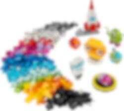 LEGO® Classic Luovat planeetat (11037) lelu innostaa yli 5-vuotiaat pikku astronautit ja tähtitieteilijät luovalle tutkimusmatkalle. Setistä lapset voivat helposti rakentaa aurinkokunnan, astronautin ja avaruussukkulan pienoismallit, joiden innostamat leikit kiidättävät LEGO rakentelijat upouusiin ulottuvuuksiin! Värikkäistä palikoista lapset rakentavat avaruussukkulan, avaruusolennon, astronautin sekä minikokoisen aurinkokunnan, jossa ovat mukana Mars, Maa, Aurinko sekä Saturnus tuttuine renkaineen. Avaruusaiheisia rakennelmia voi muunnella erivärisillä ja ‑muotoisilla palikoilla, silmillä ja ilmeillä. Mukana on myös jalusta, jonka avulla pienoismalleja voi pyörittää. Rakennelman pimeässä hohtavat osat ilahduttavat öisin. Vaihtoehtoisten rakennelmien ideakuvat vievät luovuuden uusiin kosmisiin ulottuvuuksiin – rakenna vaikka 8 planeetan täydellinen aurinkokunta. Tutustu myös LEGO Builder sovelluksen ohjeisiin ja digitaalisiin työkaluihin. LEGO Classic lelut ovat täynnä ideoita ja inspiraatiota, ja vanhemmat pääsevät mukaan hauskaan rakenteluun ja seuraamaan lasten kehitystä.