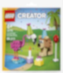 Juhli syntymäpäivää suloisten eläinten ja juhlavan kakun kera! Suloisten eläinten syntymäpäiväjuhlat (30715) on viehättävä Creator-setti, joka sisältää juhlateeman ja suloisia eläinhahmoja, kuten flamingon, leijonan ja linnun, sekä juhlavaa kakkua ja ilmapalloja. 64 osaa yli 6-vuotiaille lapsille - hauska antaa pienenä lahjana lastenjuhlissa!