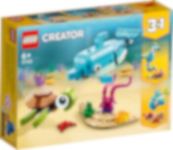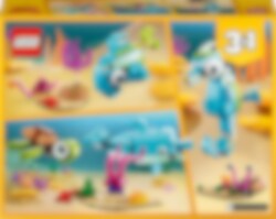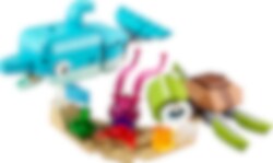 Loiskis! Sukella seikkailuihin meren syvyyksiin näiden hurjan söpöjen merieläinten parissa. Ota leikkikaveriksi ystävällinen delfiinin‑ ja kilpikonnanpoikanen. Jos kaipaat enemmän merenalaista hupailua, rakenna osista kiva merihevonen ja kotilo tai söpö kala ja rapu. Tai rakenna tämän 3in1-setin palikoista jotain ihan uutta. Sinä päätät!