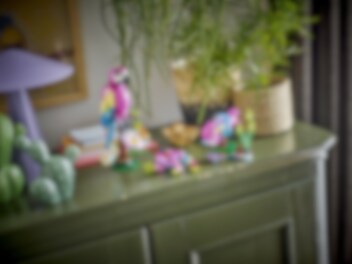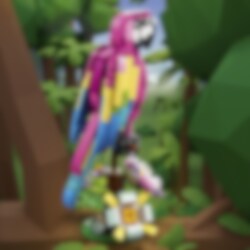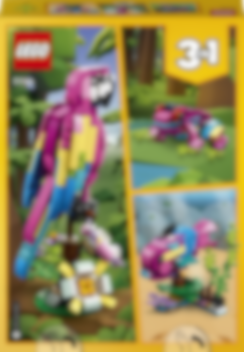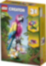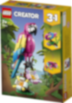 Yli 7-vuotiaat pienet rakentelijat ja eläinfanit voivat seikkailla sademetsän syvyyksissä ja uppoutua toiminnantäyteisiin tarinoihin leikkiessään LEGO® Creator 3in1 Eksoottinen pinkki papukaija (31144) rakennussetillä. Setissä on näyttävä pinkki-sininen papukaija, jonka vartalo kääntyy kokonaan sen istuessa puun oksalla. Myös sen siivet ja pyrstö liikkuvat. 3in1-leluilla lentävä lähtö luoviin leikkeihin Lapset voivat rakentaa upeasta LEGO 3in1-setistä 3 erilaista eksoottista eläintä: kirkkaanvärisen papukaijan puun oksalle, leikkisän kalan uimaan meren syvyyksiin tai veikeän sammakon, joka liikuttaa jalkojaan. Hauska digitaalinen elämys LEGO faneille Lataa LEGO Builder sovellus ja astu uudenlaiseen rakentelun maailmaan, jossa lapset voivat zoomata ja kiertää rakennelmia kolmiulotteisesti 3D-versioina, tallentaa settejä ja tarkastella edistymistään.