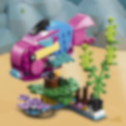 Suuntaa hauskaan seikkailuun sademetsään 3 eksoottisen eläimen kanssa! Voit rakentaa kauniin pinkin papukaijan puun oksalle värikkäiden kukkien ympäröimäksi. Seuraavaksi rakennelma muuntuu meressä uivaksi pinkki-siniseksi kalaksi tai hauskaksi, jalkojaan liikuttelevaksi sammakoksi. Käänneltävät mallit ovat täynnä yksityiskohtia, ja tämä 3in1-lelusetti takaa hauskanpitoa tuntikausiksi.