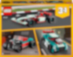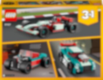 Valmistaudu jännittäviin kisatunnelmiin 3 erilaisen, huippunopean auton parissa. Hyppää viritetyn, sivupakoputkilla varustetun katukilpa-auton puikkoihin ja kiihdytä vauhtiin. Samoista osista voi rakentaa myös kilpa-auton tai punaisen ja sinivihreän värisen hot rod ‑auton. Tai rakenna mikä tahansa muu menopeli vauhdikkaisiin seikkailuihin. Tämän 3in1-setin parissa riittää yllin kyllin korkeaoktaanisia hupihetkiä.