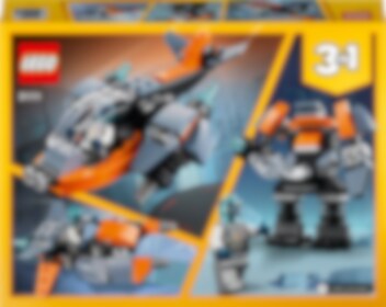 Löydä uusia, jännittäviä planeettoja kyberlennokin avulla. Hyppää ohjaamoon, käynnistä säätöraketit ja lennä robottiminihahmon kanssa uhkarohkeisiin avaruusseikkailuihin! Kun laskeudut, rakenna lennokista upea kyberrobotti ja jatka matkaa. Robotista voit rakentaa näyttävän kyberskootterin ja kiitää toimintaan tai rakentaa jotain uutta itse keksimääsi. Viihdy tuntikausia hauskoissa avaruusleikeissä tämän uskomattoman 3-in-1-setin parissa!