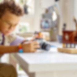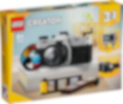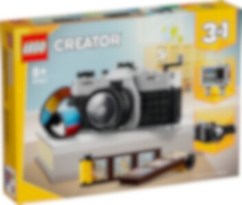 LEGO® Creator Retrokamera (31147) 3in1-rakennussetti innostaa yli 8-vuotiaat pojat ja tytöt mielikuvitusleikkeihin. Eeppisessä kameralelussa on liikkuva objektiivi, kuvauspainike kameran yläosassa, avattava takaosa palikoista rakennettavaa filmirullaa varten ja kankaasta valmistettu monivärinen kantohihna. Mukana on myös 6 tarraa, jotka voi kiinnittää filmirullan kuviksi. LEGO Creator 3in1-retrolelusetin palikoista lapset voivat rakentaa 3 erilaista mallia leikkeihin. Rakenna ensin retrotyylinen lelukamera, muuta se sitten vintagetyyliseksi videokameraksi ja loihdi lopuksi vanhan ajan televisio antenneineen. Kaikki 3 mallia näyttävät upeilta oman huoneen koristeena. LEGO Creator 3in1-lelut ovat kivoja lahjoja lapsille. 3in1-settien osista voi rakentaa 3 erilaista mallia. Rakennelmien inspiraation lähteenä ovat lasten suosituimmat kiinnostuksen kohteet, kuten supernopeat ajoneuvot, uskomattomat eläimet ja yksityiskohtaiset kaupunkiympäristöt.