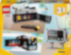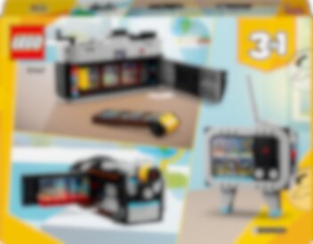 Tällä huippuhienolla Retrokameralla voit leikkiä ikuistavasi täydellisiä otoksia. Lataa filmi kameraan ja napsauta kuva. Rakenna osista sitten videokamera avattavine läppineen tai retro-TV antenneineen. Tai loihdi ikioma vintagevempain. Rakennelmat innostavat keksimään hauskoja tarinoita ja keräävät katseet koristeina. Minkä mallin rakennat tästä 3in1-setistä? Valinta on sinun!
