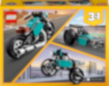 Valmistaudu mukaansatempaavaan toimintaan 3 supersiistillä ajoneuvolla. Hyppää Vintage-moottoripyörän ohjaustankoon ja aja halki maaseudun. Pysähdy ja muunna pyörä katupyöräksi, jolla voit tutustua kaupunkiin. Tai ota matala ajoasento ja käy kilpailuun huippunopealla dragsterilla, jota tehokas moottori kiidättää ympäri rataa! Jännitys ei pääty koskaan, kun käsissäsi on mahtava 3in1-rakennussetti.