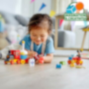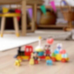 Juhli taaperon synttäreitä tyylillä ihastuttavan LEGO® DUPLO® ǀ Disney Mikin ja Minnin syntymäpäiväjunan (10941) avulla. Paljon kehittävää puuhaa ja Disneyn suosikkihahmoja sisältävä ensiluokkainen rakennuslelu tutustuttaa alle kouluikäiset numeroihin, luovaan rakentamiseen ja Disneyn taikaan!Lapset oppivat leikin varjollaTaaperot pääsevät Disneyn Mikki Hiiren, Minni Hiiren ja Pluton seurassa syntymäpäiväjunan kyytiin. Välillä pysähdytään leikkimään, ja junan parissa opitaan vaivihkaa uusia taitoja. Värikkään rakennussarjan parissa lapset kokoavat junan ja pinoavat numeropalikoita, jolloin hienomotoriikka kehittyy. Vaunuja koristellessaan lasten luovuus puhkeaa kukkaan, ja sosiaaliset taidot kehittyvät lasten leikkiessä Disneyn herttaisilla hahmoilla.Kehitä taitoja Disneyn tuttujen hahmojen kanssaKaikki LEGO DUPLO │ Disney rakennussarjat ovat ammattilaisten suunnittelemia. Ne sisältävät kekseliäitä ominaisuuksia ja tuttuja hahmoja, joiden avulla vanhemmat ja taaperot pääsevät uppoutumaan loputtomiin yhteisiin leikkeihin. Samalla vanhemmat saavat olla mukana taaperoiden tärkeissä kehitysaskelissa.