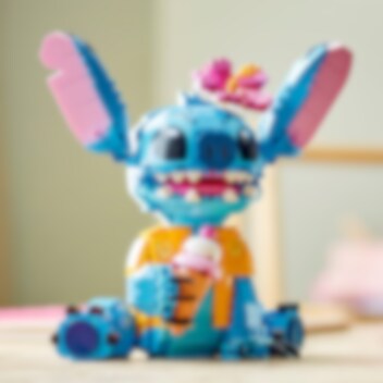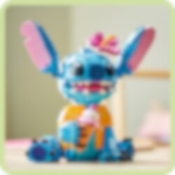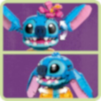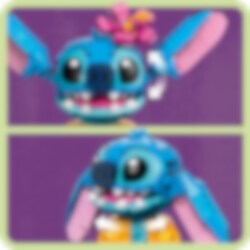 Hengaile seuranasi kaikkien aikojen siistein avaruusolento: Stitch! Rakenna ohana-juhliin LEGO® ǀ Disney setin suloinen Stitch hauskassa havaijilaispaidassaan, ja vie hänet sitten jäätelölle. Sen jälkeen voit laittaa Stitchin esille, suunnata korvat alas‑ tai ylöspäin ja pään eteen tai sivulle. Jos haluat, laita Stichin käteen jäätelötötterö ja päähän tämän suosikkikukka. Aloha!