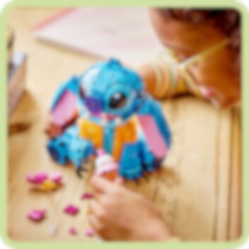 9 vuotta täyttäneet lapset ja varttuneemmatkin Lilo ja Stitch ‑fanit ilahtuvat rakennettavasta LEGO® ǀ Disney Stitch (43249) setistä, joka sopii leikkeihin ja koristeeksi. Mukana on Stitch-hahmo, Disneyn hittielokuvasta tuttu vallaton ulkoavaruuden olento, joka on puettu havaijilaispaitaan ja jolla on liikkuvat korvat ja kääntyvä pää. Mukana on myös jäätelötötterö hahmon pideltäväksi ja rakennettava kukka, jonka voi halutessaan lisätä Stichin päähän. Lapsille tarkoitettu rakennussetti sopii upeaksi koristeeksi huoneeseen kuin huoneeseen. Tämä rakennettava ja koristeltava hahmo on myös mahtava Disney-aiheinen lahjaidea varttuneemmille lapsille. Lapset ja aikuiset fanit ihastuvat lelun yksityiskohtiin, ja ikimuistoisen hahmon voi rakentaa yhdessä mukaan leikkeihin. Lapset innostuvat helposta ja intuitiivisesta rakennuselämyksestä, jossa LEGO Builder sovellus avustaa. Sovelluksessa voi zoomata ja kiertää malleja 3D-näkymässä, tallentaa settejä ja seurata edistymistään.