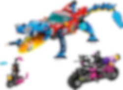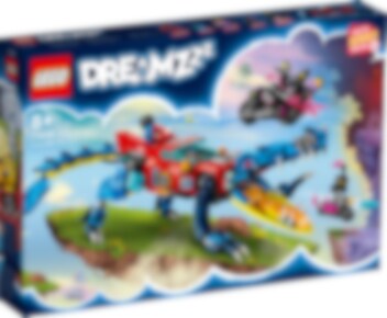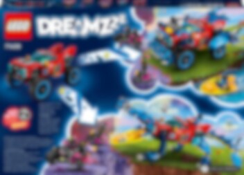 Yli 8-vuotiaat lapset voivat kiihdyttää Unimaailmaan tällä LEGO® DREAMZzz™ Krokotiiliauto (71458) rakennuslelusetillä. TV-sarjaan perustuvasta setistä lapset rakentavat uskomattoman auton, joka auttaa pelastamaan Jaydenin pelottavalta Yönuolelta! 1 setti, 2 rakennusvaihtoehtoa Lelusetti sisältää 2 vaihtoehtoista rakennusprojektia sekä paljon tarinaan perustuvia ohjeita, jotka kannustavat lapsia valitsemaan tarinan ja uppoutumaan leikkeihin tupla-ajaksi. Lapset voivat rakentaa krokotiiliauton taistellakseen painajaisia vastaan tai supernopean maasturin ja miniveneen niiden jahtaamiseen. Krokotiilitilassa ajoneuvossa on taivuteltavat käsivarret ja jalat sekä etusäleikköön piilotettu kiekonheitin, jolla lapset voivat tulittaa kiekkoja krokotiilin kidasta. Maasturitilassa ajoneuvossa on pyörivät renkaat ja irrotettava katto, jolloin minihahmon saa sen sisään istumaan. Upeat minihahmot Rakennuslelusetti sisältää Cooperin ja Jaydenin yksityiskohtaiset minihahmot sekä Yönuoli-hahmon, jolla on hieno moottoripyörä ja ilkeä apuri.