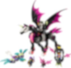 Yli 8-vuotiaat lapset pääsevät lennähtämään Unimaailman seikkailuihin LEGO® DREAMZzz Pegasus, lentävä hevonen (71457) rakennuslelusetillä leikkiessään. TV-sarjaan perustuvassa setissä Zoey lähtee pelastamaan ystäväänsä Novaa, jonka painajaishahmo Susan on kaapannut lentävän pegasusratsun selkään. Tarinaan perustuvilla rakennusohjeilla lapset pääsevät uppoutumaan toimintaan ja käyttämään mielikuvitustaan päättääkseen, mihin Zoeyn seikkailut vievät. 1 rakennussetti, 2 vaihtoehtoa Zoey suuntaa pelastamaan Novaa, ja lapset voivat rakentaa hänelle joko lintuhahmon apuriksi tai kiinnittää hänelle siivet, joilla hän pääsee lentämään painajaisten perään. 2 vaihtoehtoista rakennustapaa takaavat tuplamäärän leikkejä ja kannustavat mielikuvituksen käyttöön. Taruolentoja ja kiehtovia yksityiskohtia Lentävällä pegasus-hevosella on taipuisa pää, kupeet ja häntä, joten lasten on helppo vaihtaa hahmon asentoa leikeissä. Olennon selkään voi kiinnittää Painajaiskuninkaan valtaistuimen ja Zoeyn linnun.