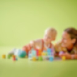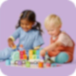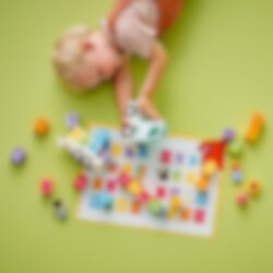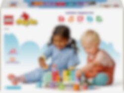 LEGO® DUPLO® Kaupunki Aakkosrekka (10421) rakennuslelu saa leikki-ikäiset lapset innostumaan kirjainten opettelusta. Aakkosten opetteluun suunniteltu luova lelu innostaa oppimaan leikkien lomassa. Lapset kiinnittävät perävaunun rekkaan ja auttavat2 LEGO DUPLO hahmoa lastaamaan palikoita kyytiin ja purkamaan niitä pois. Leikin lomassa opitaan kirjaimia ja värejä, ja samalla myös kielelliset ja hienomotoriset taidot kehittyvät. Setti sisältää mielikuvitusleikkeihin innostavia tarvikkeita, kuten L EGO DUPLO aapisen ja stereot, jotka innostavat niin lapsia kuin vanhempiakin laulamaan aakkoslaulua. Opettavaisen lelun parissa lapset keksivät luovia tarinoita hahmojen kavutessa kuljettajan paikalle ja suunnatessa uusiin seikkailuihin! LEGO DUPLO rakennuslelujen parissa naperot saavat suurenmoisen alun loputtomiin leikkeihin, jotka kehittävät itseilmaisua ja innostavat oppimaan uutta.