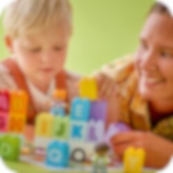 Innosta leikki-ikäiset opintielle muodostamaan sanoja LEGO® DUPLO® Kaupunki Aakkosrekka rakennuslelun parissa. Lapset kiinnittävät rekkaan perävaunun, lastaavat sen kyytiin aakkospalikoita ja oppivat samalla kirjaimia hauskalla tavalla. Setti sisältää myös leikkistereot ja kirjapalikan, jotka innostavat lapsia laulamaan aakkoslaulua ja lukemaan kirjaimia ääneen hauskoissa leikeissä yhdessä vanhempien kanssa.