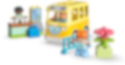 LEGO® DUPLO® Kaupunki Bussiajelu (10988) setti vie perheen pienimmät arjen seikkailuun. Värikäs lelusetti on tarkoitettu yli 2-vuotiaille lapsille, jotka pääsevät leikkimään bussimatkaa päiväkotiin ystäviensä kanssa. Lapset odottavat bussia kaikessa rauhassa lelupysäkin penkillä eväsrasioidensa herkullista sisältöä tutkien. Pienten lasten lelujen parissa oppiminen on hauskaa LEGO DUPLO seteissä on monenlaisia hahmoja, joten pienet lapset voivat leikkiä tutustuvansa uusiin ystäviin. Lasten hienomotoriset taidot kehittyvät koulubussin kattoa avatessa ja asettaessa hahmoja sisään. Pienet lapset tutustuvat liikennekäyttäytymiseen, sillä hahmot seisovat aidan takana bussin saapuessa. Kuten kaikki LEGO DUPLO lelut, myös tämän setin parissa lapset saavat ilmaista itseään ja tutustua uusiin asioihin hauskasti.