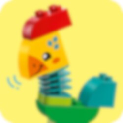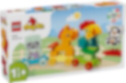 Kaikki kyytiin! Hauska LEGO® DUPLO® Ensimmäinen eläinjunani houkuttelee tuntikausiksi luovien värienyhdistelyleikkien pariin. Lapset laittavat eläimet vaunujen kyytiin värien mukaan. Maatilan eläimiä esittävät söpöt hahmot voi rakentaa yhä uudelleen ikiomalla tavalla. Tärkeät motoriset taidot kehittyvät leikkien lomassa lasten napsautellessa junavaunuja yhteen ja heilutellessa kukon taipuisaa kaulaa.