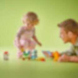 Onko lähipiirissäsi lasta, joka pitää luovista leikeistä ja luontoaiheisista leluista? LEGO® DUPLO® Ensimmäinen eläinjunani (10412) setti innostaa yli 1½-vuotiaat lapset värienyhdistelyleikkien pariin. Taaperoille sopiva oppimislelu sisältää 4 söpöä, rakennettavaa eläinhahmoa – kukon, hevosen, lampaan ja lehmän – jotka johdattavat perheen pienimmät hauskojen roolileikkien maailmaan. Lasten ongelmanratkaisutaidot kehittyvät, kun he rakentavat korttien ohjeilla eläimiä ja yhdistävät ne erivärisiin junavaunuihin. Junalelu sisältää myös 2 ylimääräistä palikkaa, joiden avulla lapset voivat rakentaa eläimistä ikiomia luovia leluhahmoja. Hauskat yksityiskohdat, kuten kukon taipuisa kaula ja yhdisteltävät junavaunut, innostavat leikkeihin ja kehittävät lasten motorisia taitoja. Vanhemmat voivat olla mukana tärkeissä kehitysaskelissa, kun perheen pienimmät saavat käsiinsä nämä loputtomiin leikkeihin, omiin tarinoihin ja hauskaan tutkiskeluun innoittavat eläinaiheiset LEGO DUPLO lelut.