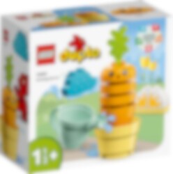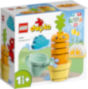 Pienet lapset oppivat terveellisestä ruokavaliosta ja kasvien viljelystä hauskoissa leikeissään opettavaisella LEGO® DUPLO® Ensimmäinen kasvava porkkanani (10981) lelusetillä. Värikäs setti on suunniteltu ohjaamaan yli 1,5-vuotiaita lapsia itsenäiseen toimintaan, kun he pinoavat palikoita ja saavat porkkanan kasvamaan. Leikki-ikäiset lapset saavat hallita säätä aurinko- ja sadepilvipalikoilla ja antaa kasville kaiken, mitä se tarvitsee kasvuun. Lapset voivat kastella porkkanaa kastelukannulla. Porkkana näyttää hämmästyneeltä – olikohan vesi kylmää? Lelujen parissa oppiminen on hauskaa Kaikki LEGO DUPLO lelut ovat ammattilaisten kehittämiä, ja niihin liittyy hauskoja tarinoita, kirkkaita värejä, kiinnostavia hahmoja ja lukuisia yksityiskohtia. Setit innostavat mielikuvitusleikkeihin ja tukevat pienten lasten varhaisten taitojen kehittymistä.