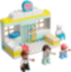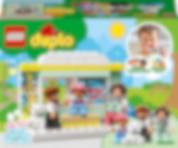 LEGO® DUPLO® Pelastustehtävät: Lääkärissä (10968) setin hauskat leikit ja ystävälliset hahmot hurmaavat pienet lääkärin‑ ja sairaanhoitajanalut takuuvarmasti. Tämä monipuolinen leikkisetti on loistava tapa lieventää 2-vuotta täyttäneiden lasten lääkärissä käyntiin liittyvää jännitystä. Kehittävä lääkärileikkisetti Hauskat leikit tutustuttavat alle kouluikäiset lapset lääkäriaseman arkeen. Ystävällinen lääkärihahmo kuuntelee lapsipotilaan sydäntä taipuisalla stetoskoopilla (kiinnitetty pysyvästi). Lapsipotilaan paidassa on sydämen kuva. Seinällä olevan kirahvimitan avulla voidaan mitata pituus. Setissä on käsienpesuallas ja tuoli, johon isän voi laittaa istumaan. Tämän leikkisetin parissa sosiaaliset ja tunne-elämän taidot kehittyvät ja lapset oppivat, miten tärkeää on hyvä terveys. Pienet lapset oppivat leikin varjolla Vanhemmat saavat olla mukana tärkeissä kehitysaskelissa, kun lapset saavat loputtomiin leikkeihin, itseilmaisuun ja hauskaan tutkiskeluun innoittavat LEGO DUPLO lelut käsiinsä.